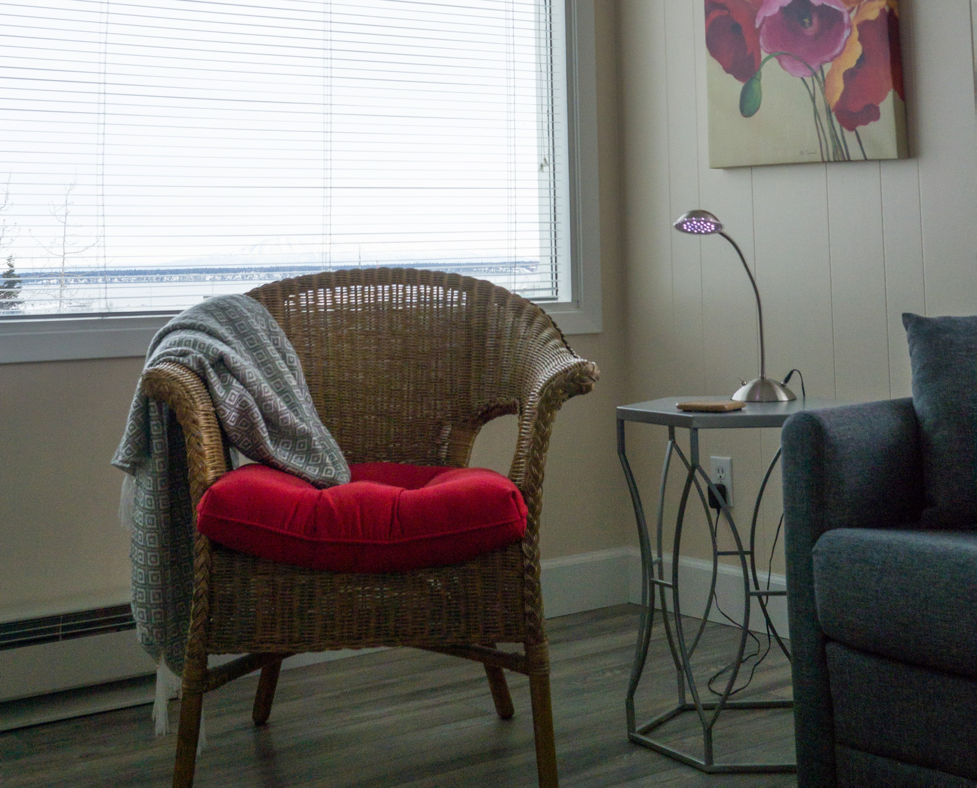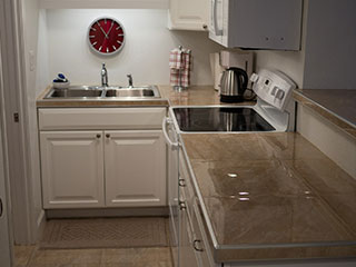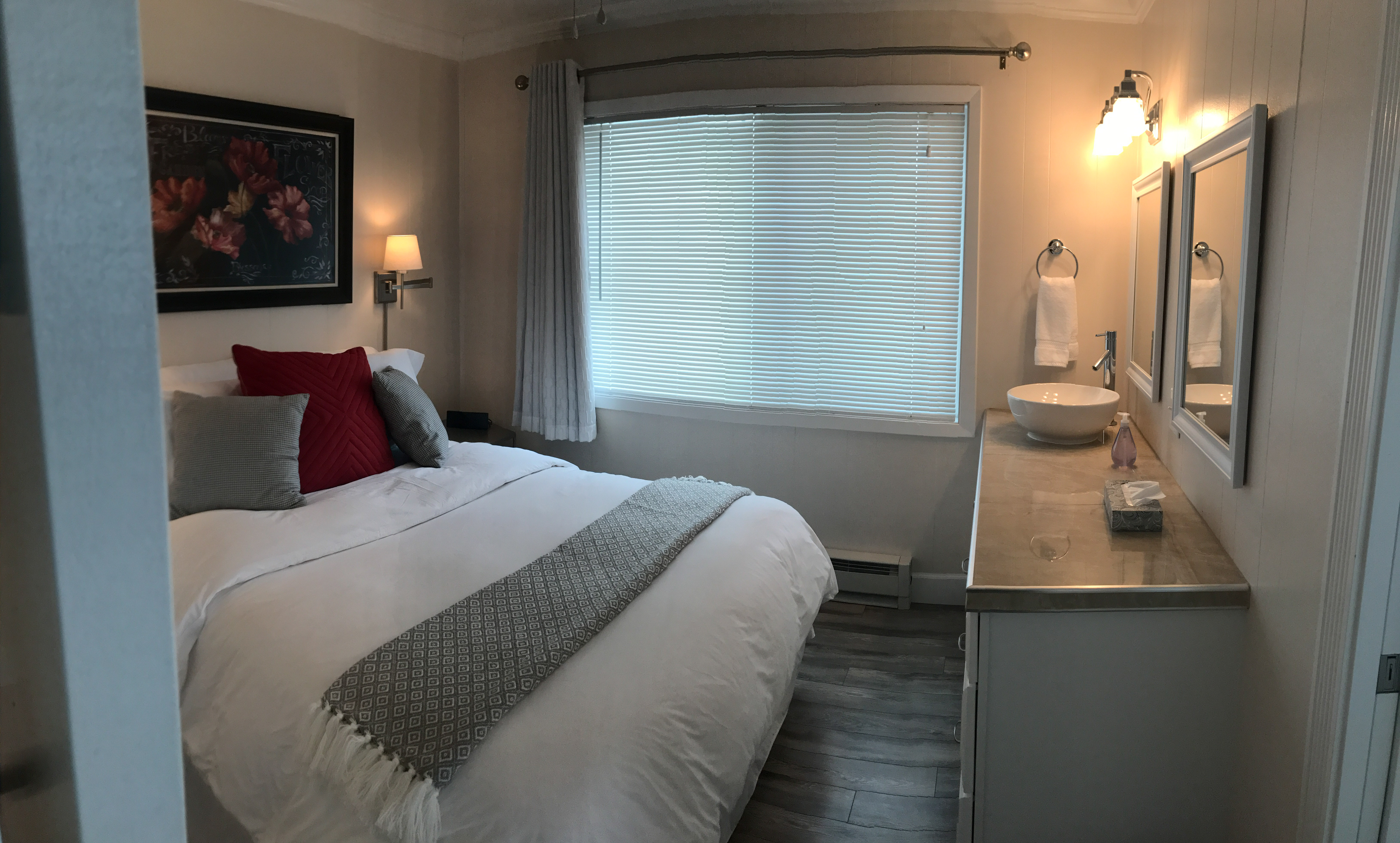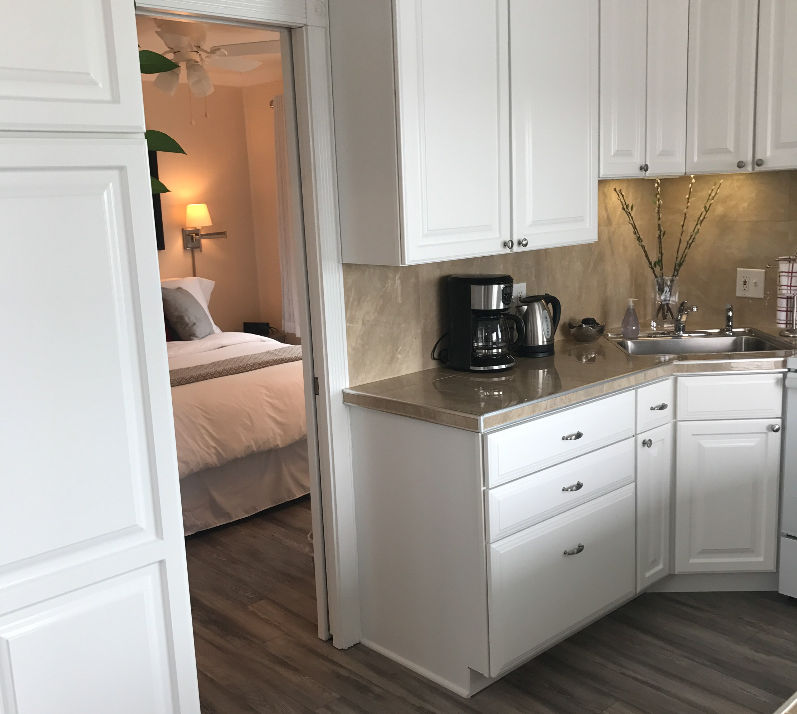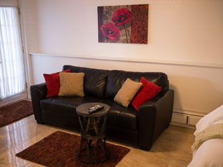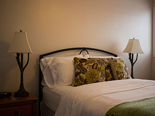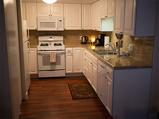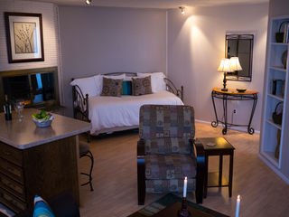 Queen bed and double sofa sleeper, small private bath and kitchen with standard fridge, stove, coffeemaker, toaster, and microwave. Ground floor. Sleeps 3. $169 Double Occupancy |