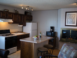 Queen bed in bedroom, private bath and kitchen with standard fridge, stove, coffeemaker, toaster, and microwave. Queen sofa sleeper in living room, Top floor, magnificent view, deck outside door. Sleeps 3. $189 Double Occupancy |
